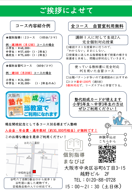 当校のチラシ。周辺に配っている時と配っていない時があります。